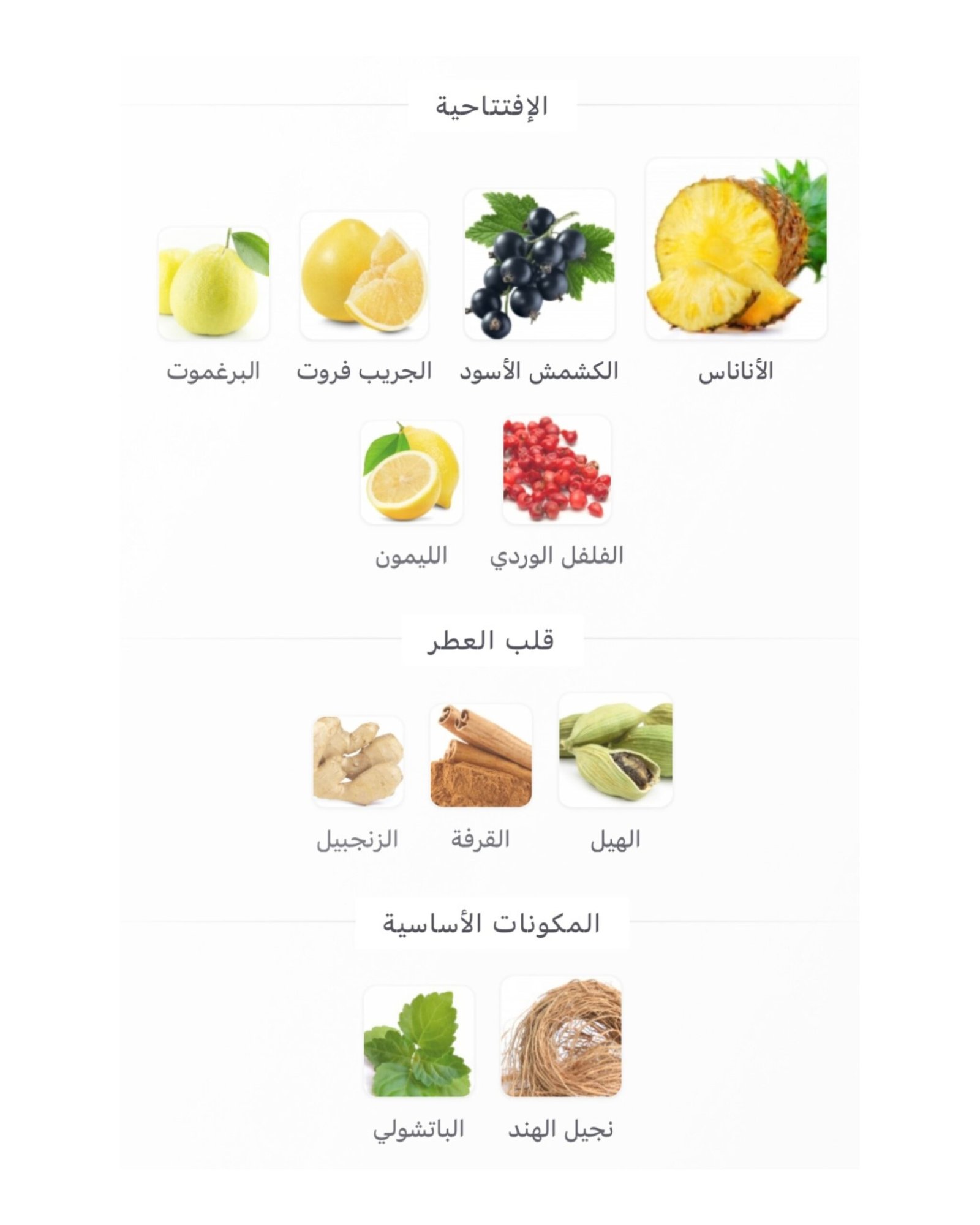 قلب العطر الهيل, القرفة و الزنجبيل;