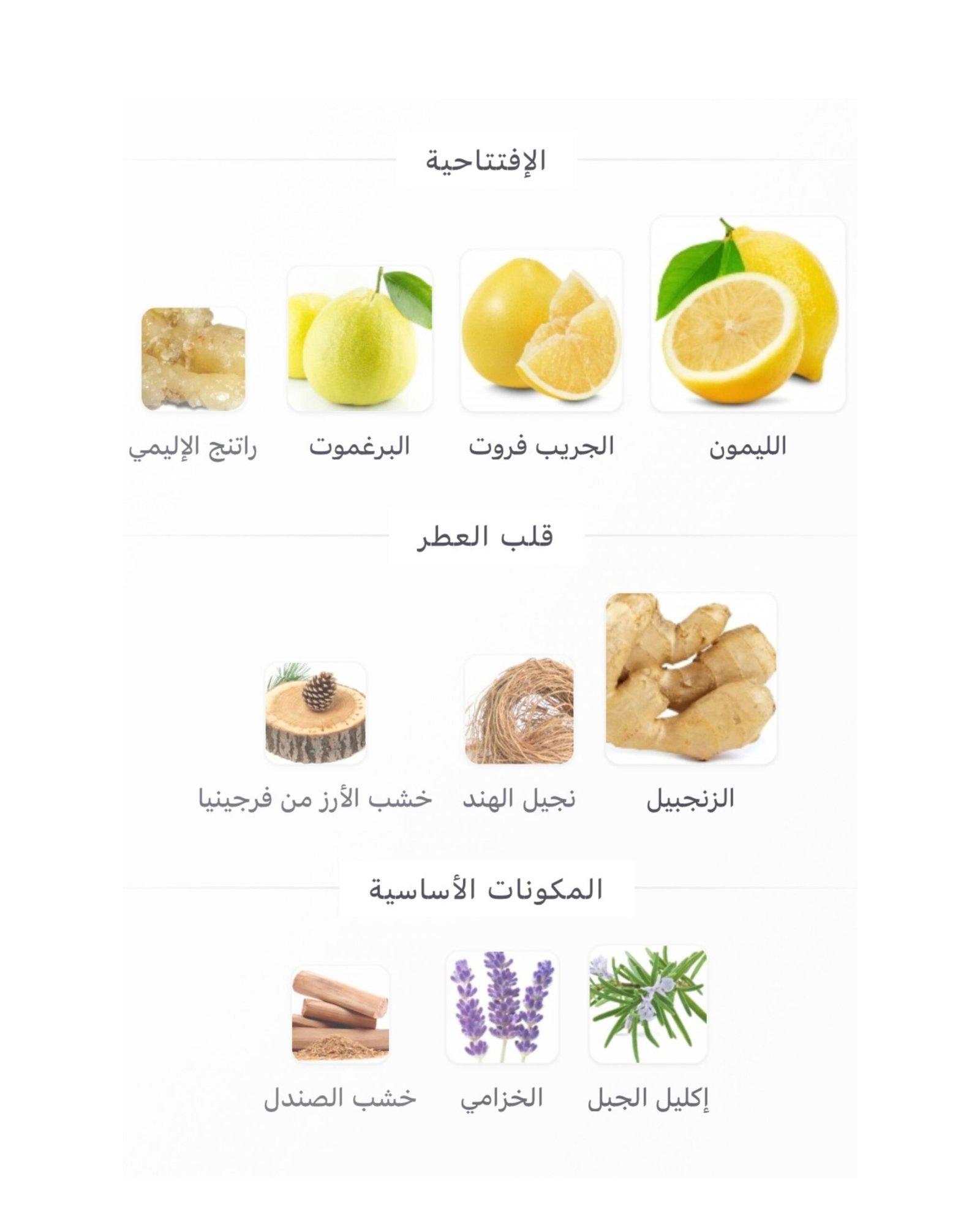 إفتتاحية العطر الليمون, الجريب فروت, البرغموت و راتنج الإليمي;
