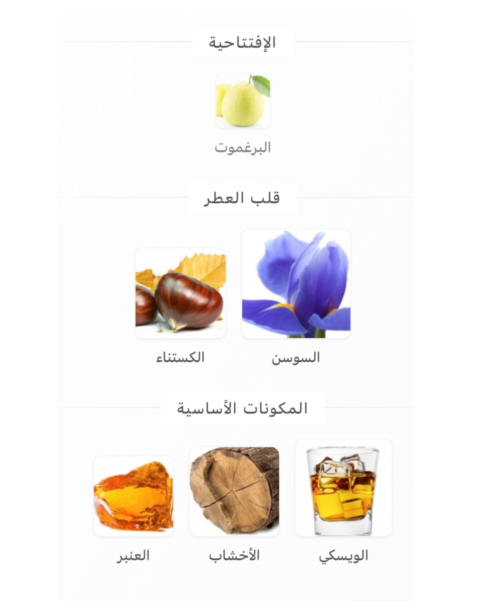 قاعدة العطر تتكون من الويسكي, الأخشاب و العنبر.