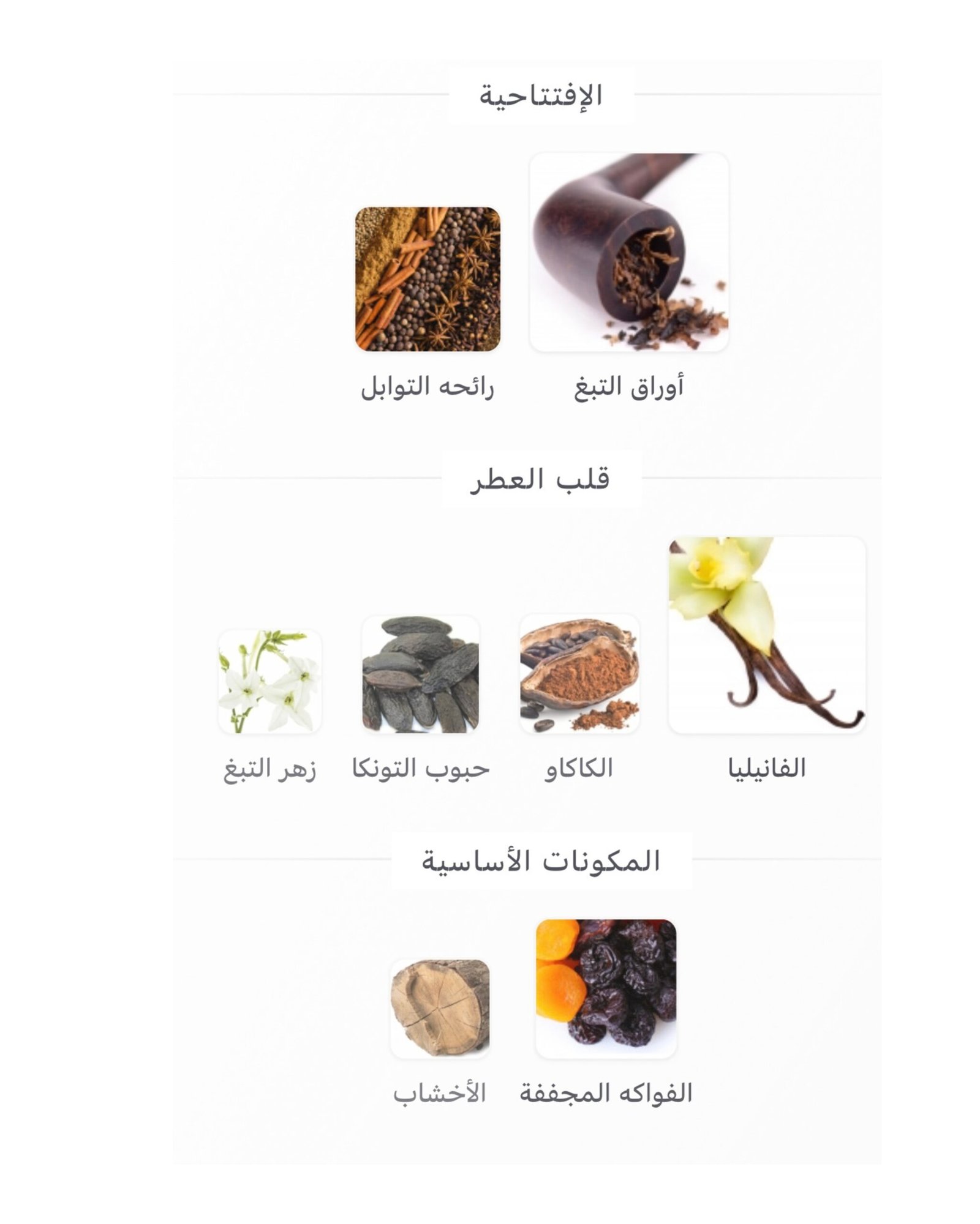 قاعدة العطر تتكون من الفواكه المجففة و الأخشاب.